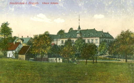 Vor Beginn des 1. Weltkrieges wurde von den Gemeindevätern der Plan gefasst, in Neukirchen eine Zentralschule für den gesamten Ort zu errichten. Als Platz dafür war das Gelände östlich der Steudtenschen Villa vorgesehen. Die Gemeinde kaufte die erforderlichen Grundstücke und baute eine Zufahrtsstraße. Der 1. Weltkrieg ließ dieses Projekt scheitern. Diese Straße erhielt den Namen Schulstraße, obwohl sich bis 1954 an ihr keine Schule befand. Nach dem Ersten Weltkrieg wurde der östliche Seitenflügel an die untere Schule angebaut, welcher im Herbst des Jahres 1952 einstürzte.